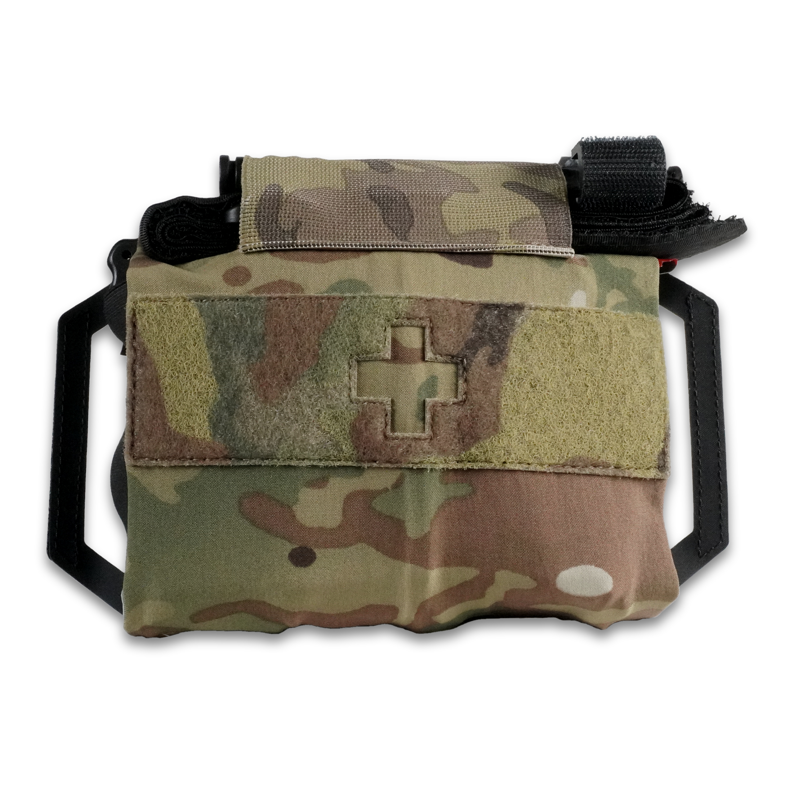 La base de la Poche Médicale HIFAKS® est composée d’une feuille de composite découpée au laser afin de laisser la possibilité à l’utilisateur de la porter sur une ceinture ou sur une plateforme MOLLE grâce aux attaches universelles fournies.